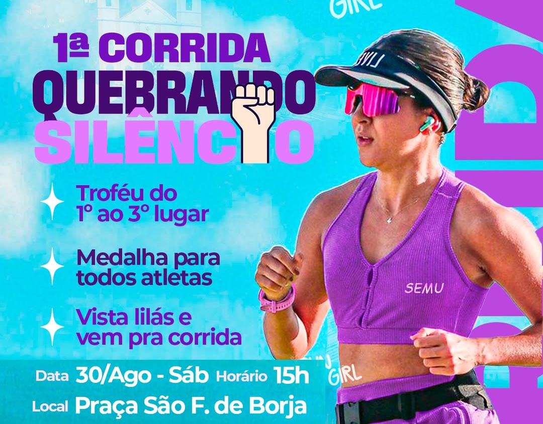 Neste sábado, dia 30 de agosto, Piaçabuçu realiza a 1ª Corrida Quebrando o Silêncio, uma iniciativa que une esporte, conscientização e valorização da vida. O evento, promovido pela Secretaria Municipal da Mulher (SEMU) em parceria com a Secretaria de Esportes e Lazer, terá início às 15h, na Praça São Francisco de Borja.