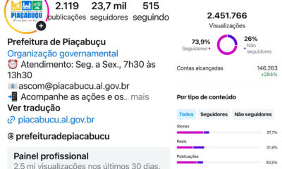 A comunicação eficiente e estratégica da Prefeitura de Piaçabuçu tem conquistado números impressionantes nas redes sociais, consolidando-se como um dos perfis institucionais mais influentes da região....